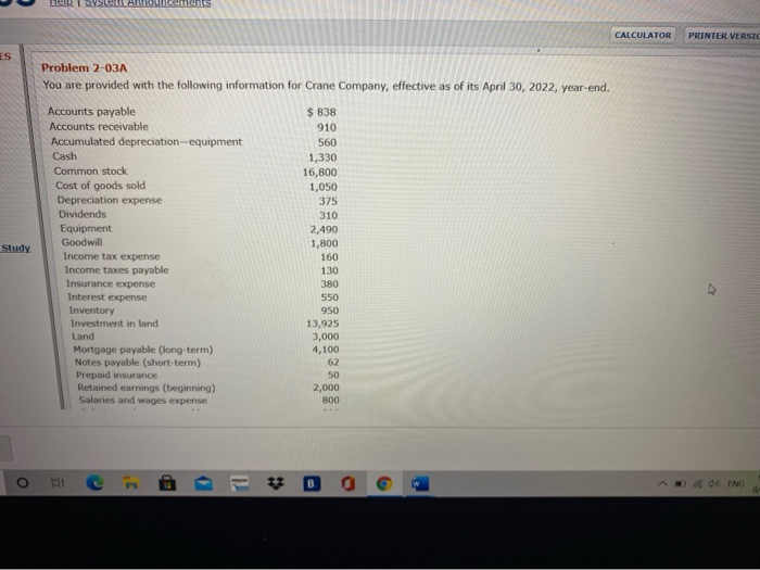 Solved Le Systenouncements Calculator Printer Versic Es Chegg Com